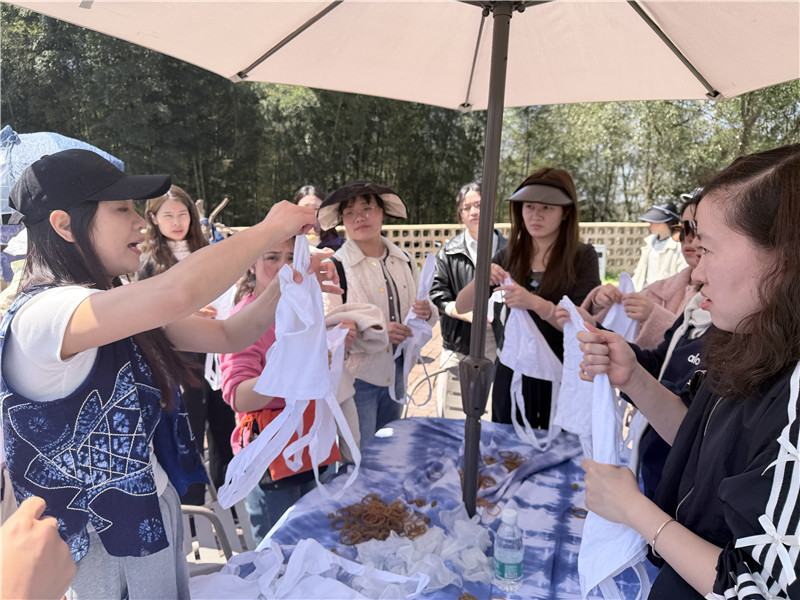 思维的火花尚未熄灭,指尖的创意已然绽放。随后的扎染体验环节,大家化身巧手匠人,在传统非遗技艺中感受创意魅力,在手工创作中舒缓身心、陶冶情操。每一块扎染都是独一无二的,正如每一位干警,在各自的岗位上绽放着不可替代的光芒。