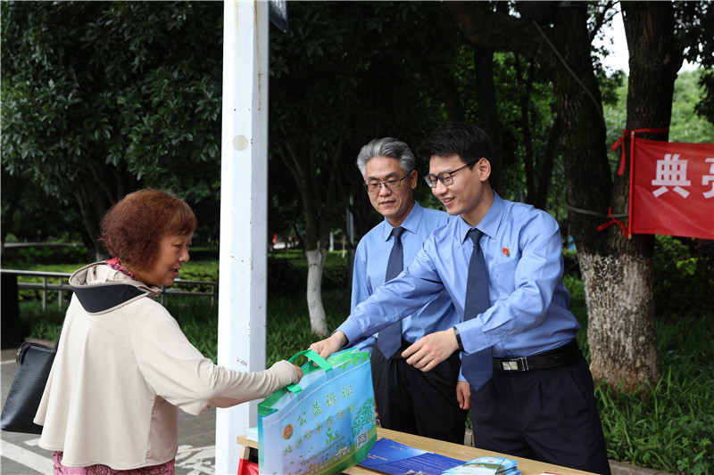 2025年5月30日上午,郴州市北湖区人民检察院在五岭广场开展民法典暨《信访工作条例》普法宣传活动,让法治精神融入百姓生活,为群众送上丰盛的“法治套餐”。