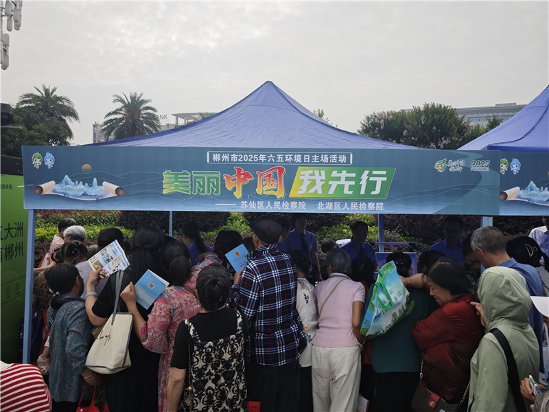 为深入贯彻落实习近平生态文明思想,践行“绿水青山就是金山银山理念”,2025年6月5日上午,北湖区检察院受邀参与郴州市人民检察院、郴州市生态环境局等单位联合在五岭广场开展的六五环境日主题宣传活动,倡导广大群众保护生态环境就是爱护自己的家园,营造碧水蓝天的良好法治生态环境。